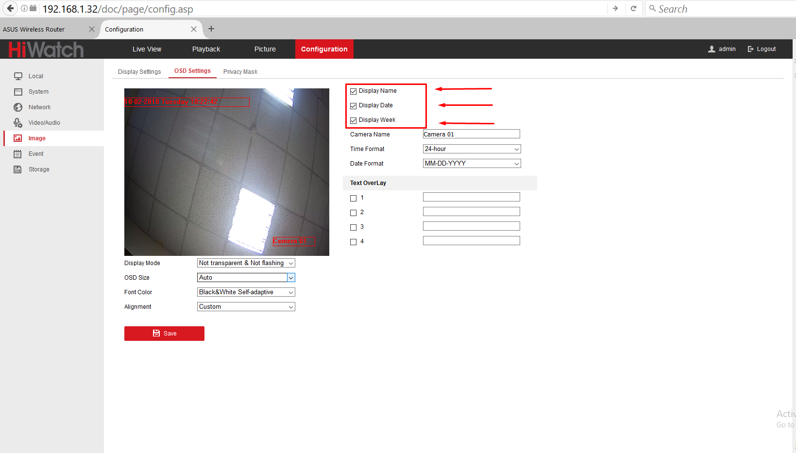 - В настройках, в меню (столбец слева) перейти в пункт Image, затем (сверху в окне Image - в подвкладку OSD Settings)