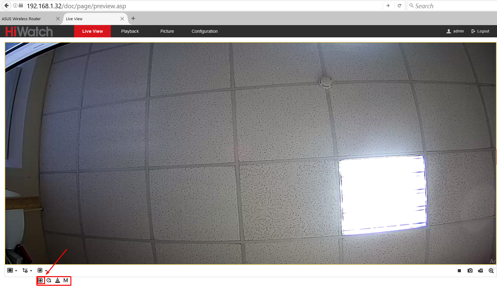 - Логин: admin Пароль: Nikola1856. Откроется главная страница WEB-интерфейса с окном вывода картинки с камеры в реальном времени