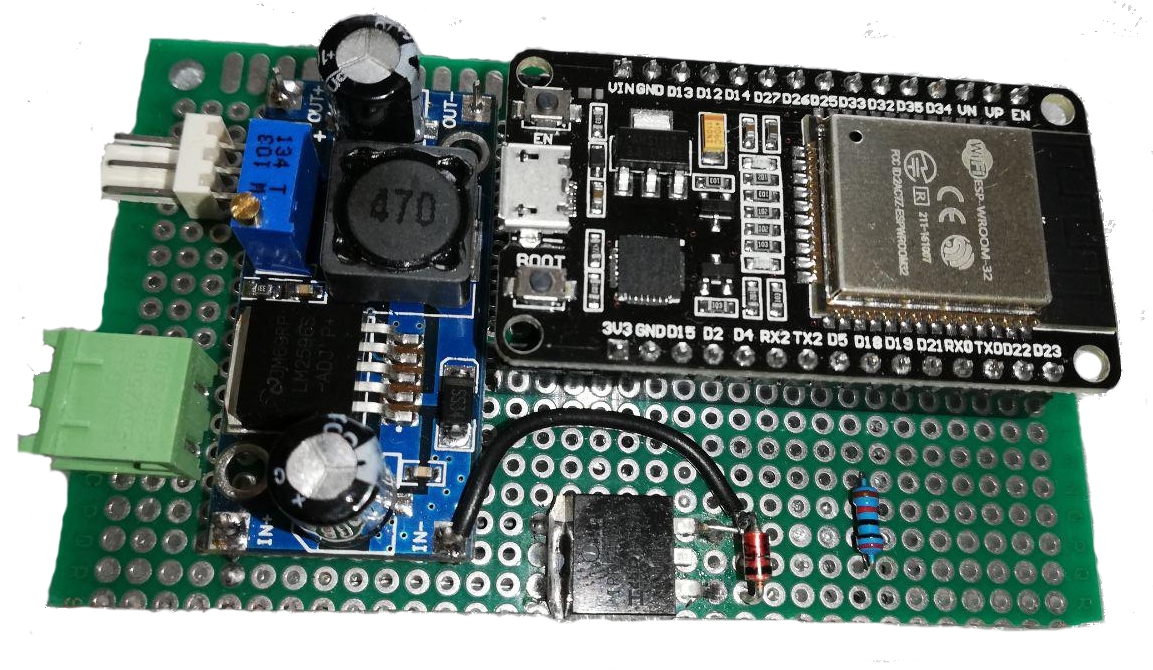 |Наименование|Кол-во|Ссылка |–|–|– |FDV301N | 1 | |IRF540N | 1 | |N4742A | 1 | |2k resistor | 1 | |49k resistor | 1 | |10k resistor | 1 | |NodeMCU-32S | 1 | |LM2596 | 1 |