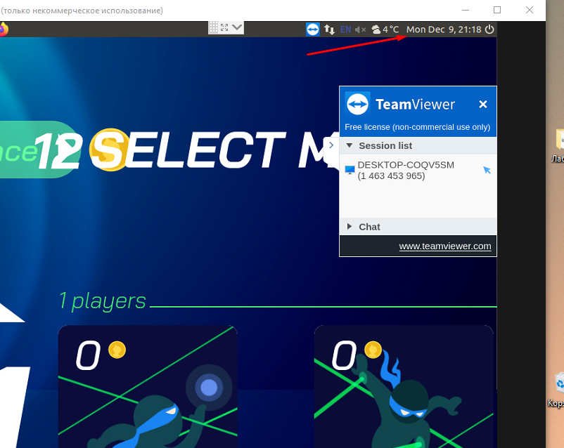 - Так как в дальнейшем необходимо настроить доступ по VNC (это делается непосредственно с самого компьютера, а не удаленно по ssh), удобнее всего будет подключиться к компу через TeamViewer и дальнейшие настройки производить в термининале самого сервака. Для этого нужно запустить TeamViewer и в окне ID партнера вписать ID полученный в пункте 7. После чего появится окно с запросом пароля. Вписать Nikola1856.