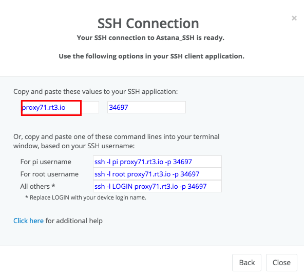 - во вновь открывшемся окне из 2-ой строки (той, где будет написано For pi username) необходимо скопировать выданную сайтом ссылку полностью. (Если используется компьютер на Windows, необходимо копировать адрес из первой строки, из самого левого окна)